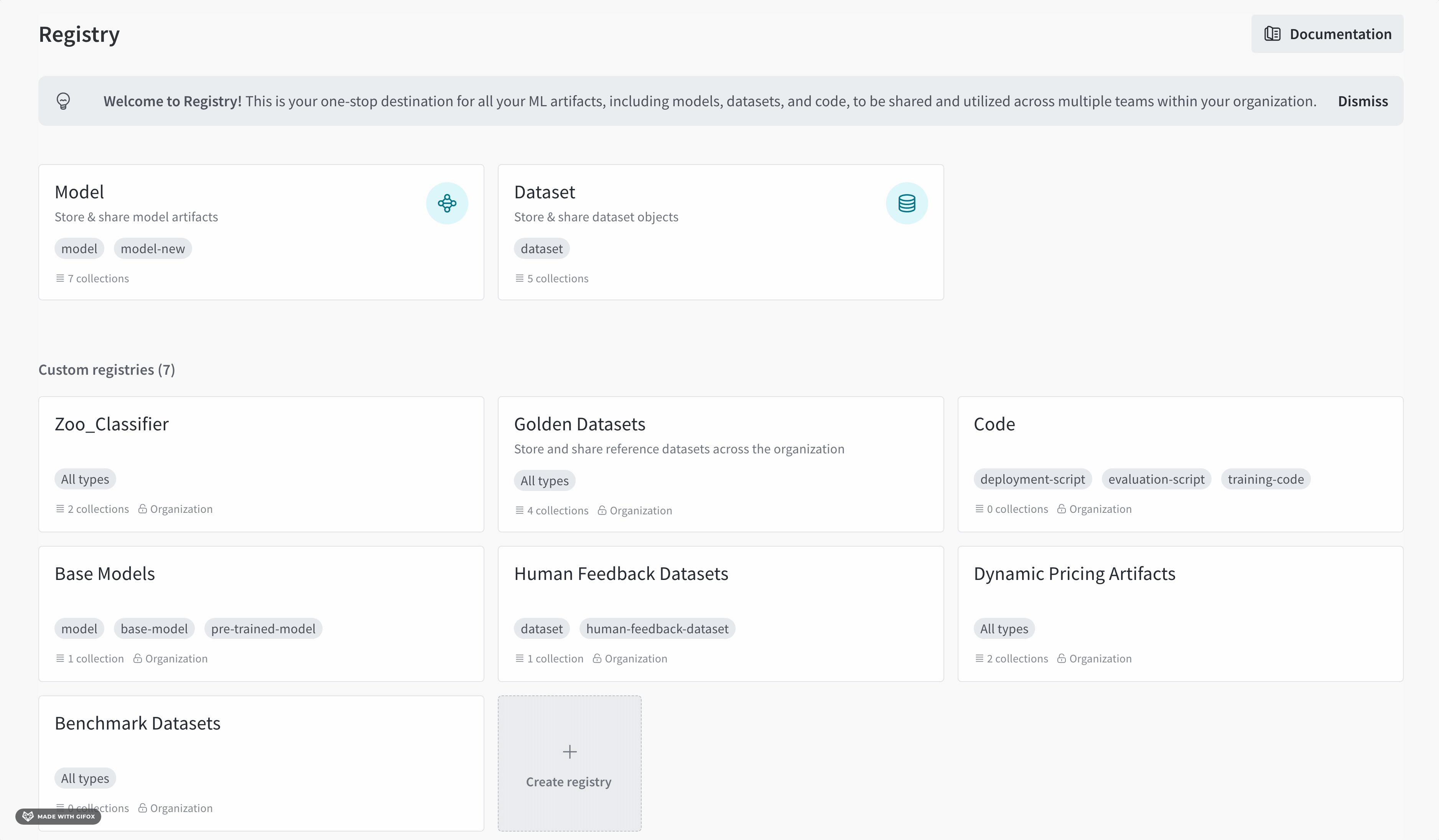 - 레지스트리 앱(https://wandb.ai/registry/)으로 이동합니다.